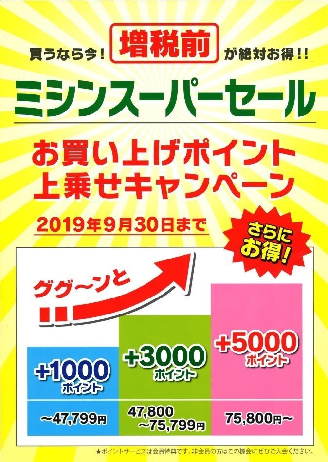 ミシンも今月いっぱいまで、過去最安値の大特価となっておりますので、是非この機会にお買い求めくださいませ!